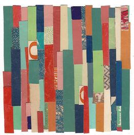 Seeking, finding, collecting, assembling . . . all parts of a very transportive process. Much like walking the shoreline, scanning for that shell or pebble waiting to be discovered, I scavenge for discarded books: paperback covers with beautifully shaped type, bits of color and interior decorative end pages hidden inside. The pieces combine and puzzle together to tell a new story.